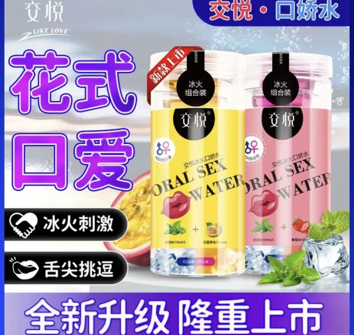 [交悦]漱口水(冰火口交水)(草莓味)(薄荷味)10mg×8袋/盒夫妻床上调情成人情趣用品